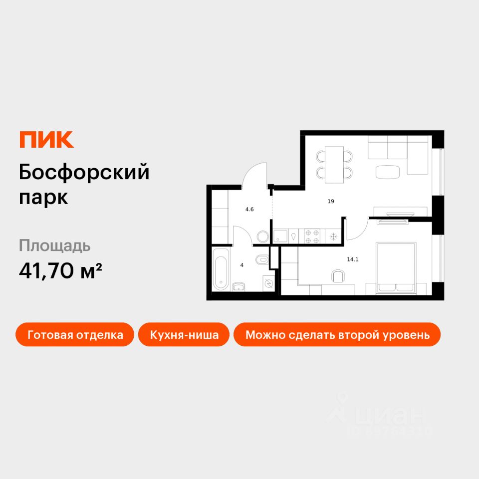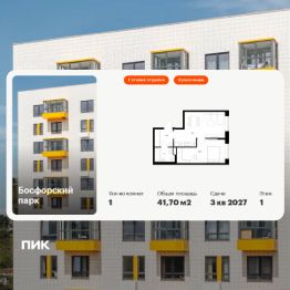 Продаётся 1-комн. квартира площадью 41,7 кв.м на 1 этаже 9 этажного дома (Корпус 9, Секция 1) проекта ПИК Босфорский парк. Светлый просторный подъезд на уровне земли, функциональная планировка, большие окна, c отделкой.