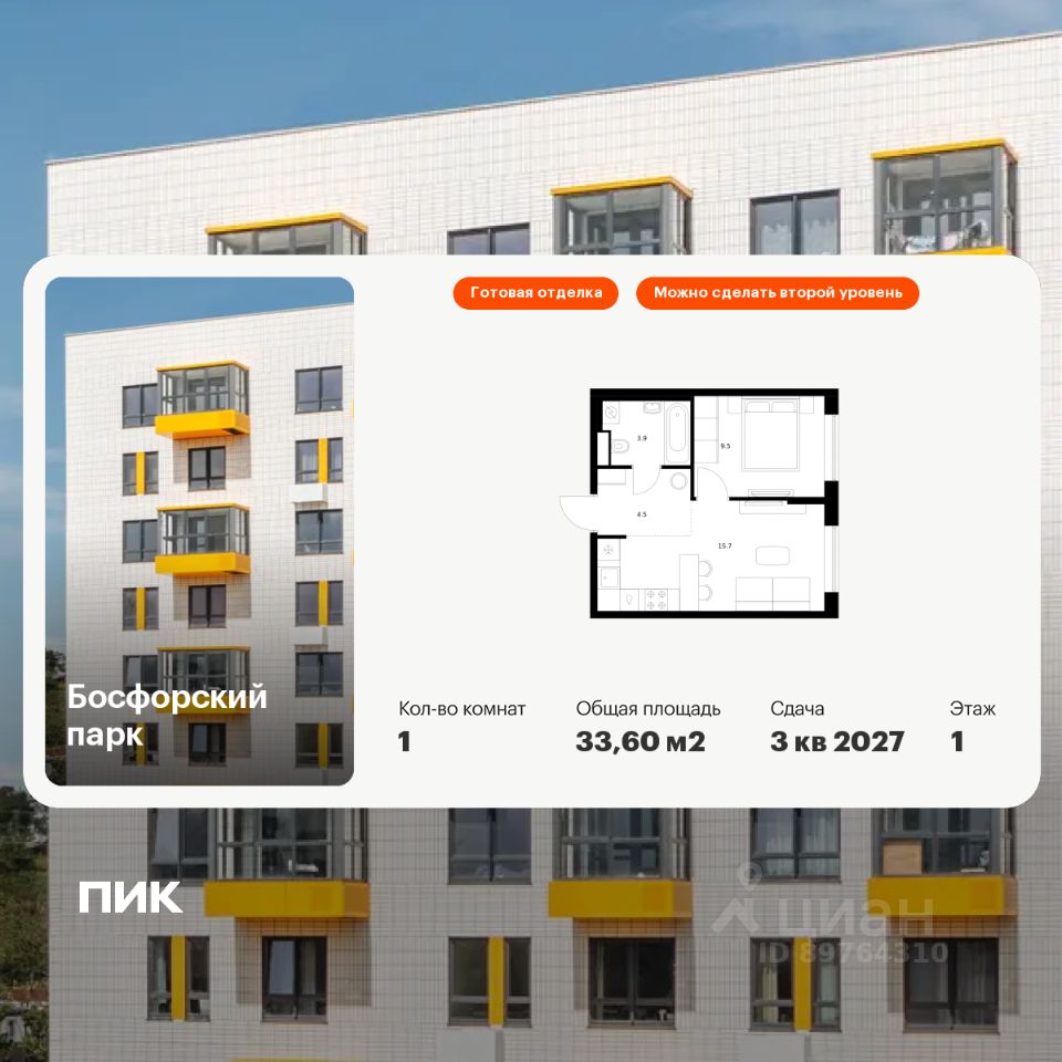 Продаётся 1-комн. квартира площадью 33,6 кв.м на 1 этаже 9 этажного дома (Корпус 9, Секция 1) проекта ПИК Босфорский парк. Светлый просторный подъезд на уровне земли, функциональная планировка, большие окна, c отделкой.