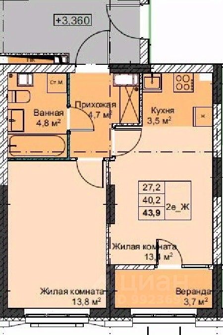 43,9 м²