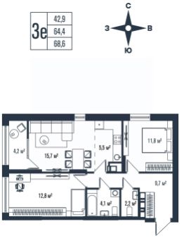 68,6 м²