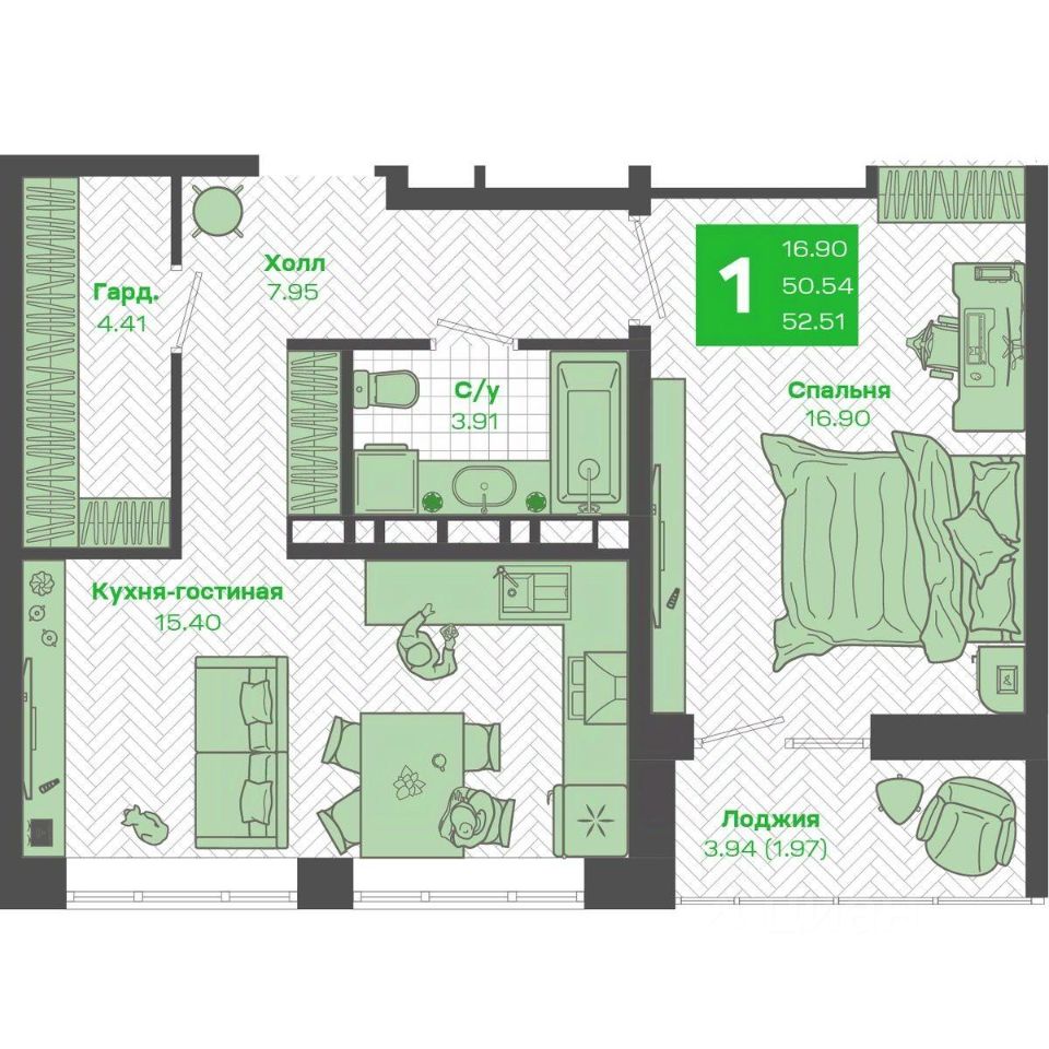 Общая площадь49,39 м²