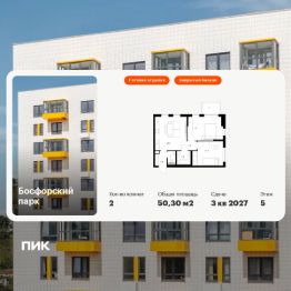 Продаётся 2-комн. квартира площадью 50,3 кв.м на 5 этаже 9 этажного дома (Корпус 9, Секция 1) проекта ПИК Босфорский парк. Светлый просторный подъезд на уровне земли, функциональная планировка, большие окна, c отделкой.