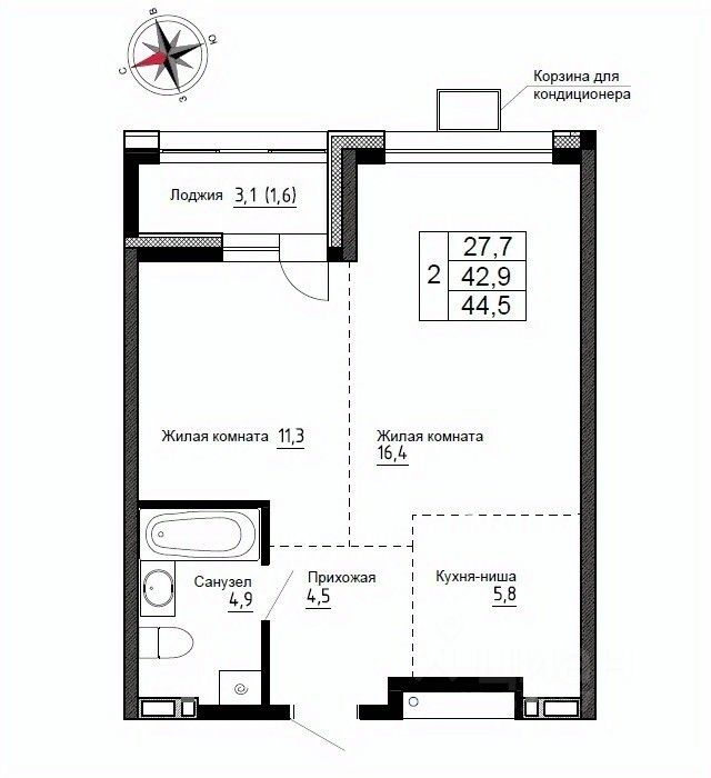 Продаётся 2-комнатная квартира в строящемся доме (Дом 2), срок сдачи: III-кв. 2026, общей площадью 44.5 кв.м., на 10 этаже. ЖК "Новый" - это: