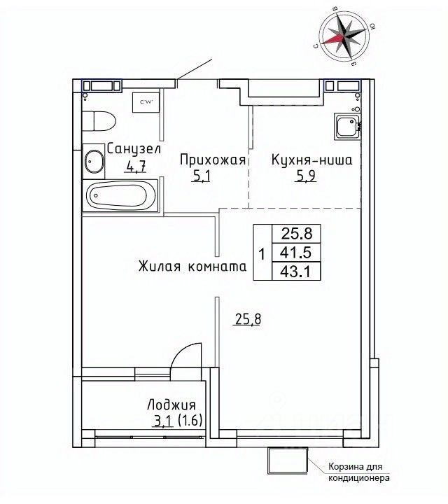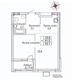 Продаётся 1-комнатная квартира в строящемся доме (Дом 1), срок сдачи: III-кв. 2026, общей площадью 43.1 кв.м., на 2 этаже. ЖК "Новый" - это: