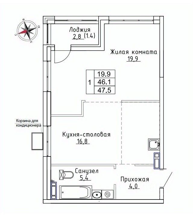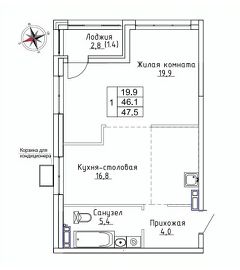 Продаётся 1-комнатная квартира в строящемся доме (Дом 1), срок сдачи: III-кв. 2026, общей площадью 47.5 кв.м., на 4 этаже. ЖК "Новый" - это: