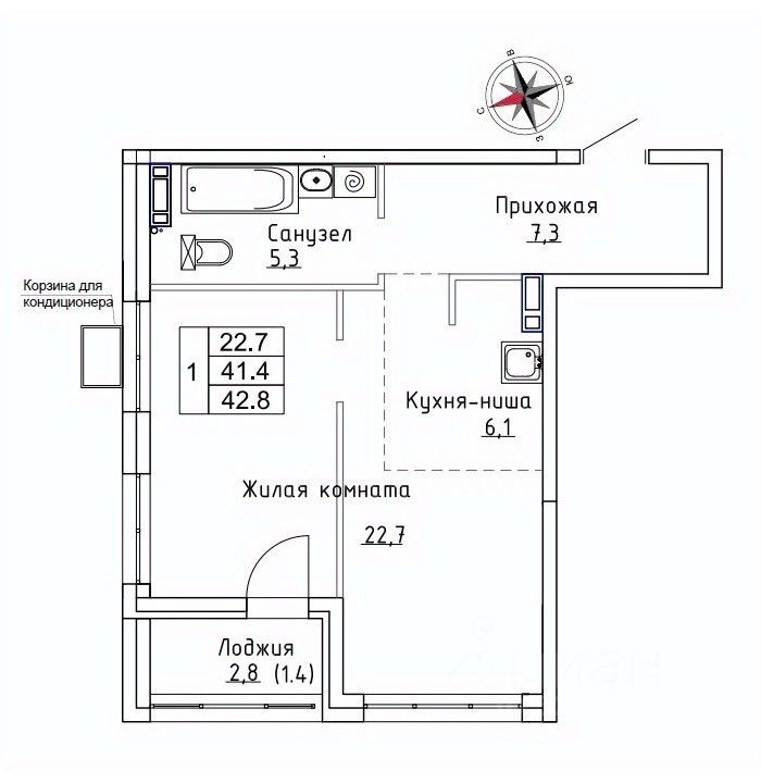 Продаётся 1-комнатная квартира в строящемся доме (Дом 1), срок сдачи: III-кв. 2026, общей площадью 42.8 кв.м., на 6 этаже. ЖК "Новый" - это: