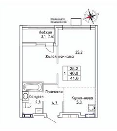 Продаётся 1-комнатная квартира в строящемся доме (Дом 1), срок сдачи: III-кв. 2026, общей площадью 41.6 кв.м., на 9 этаже. ЖК "Новый" - это: