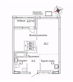 Продаётся 1-комнатная квартира в строящемся доме (Дом 1), срок сдачи: III-кв. 2026, общей площадью 40.7 кв.м., на 9 этаже. ЖК "Новый" - это: