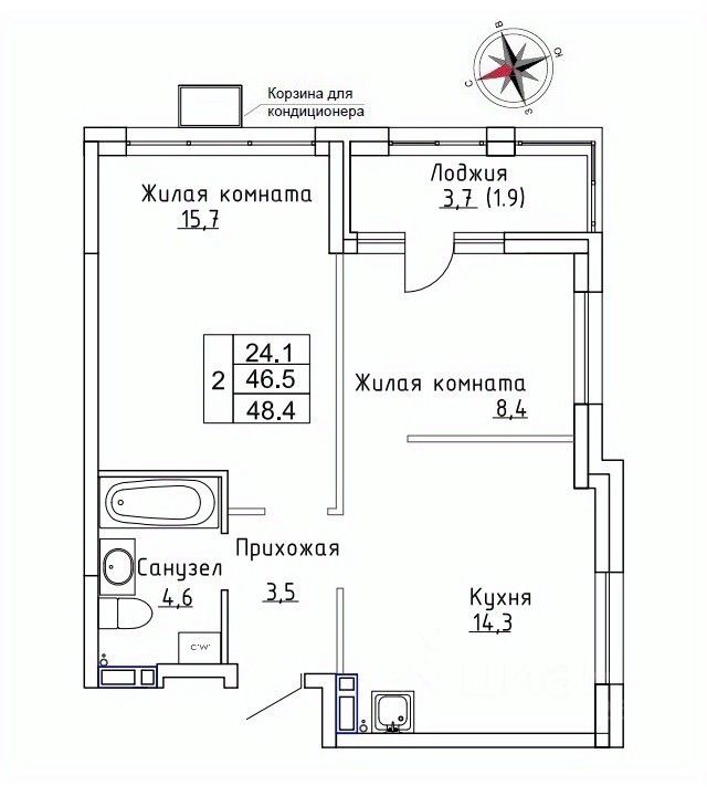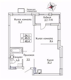 Продаётся 2-комнатная квартира в строящемся доме (Дом 1), срок сдачи: III-кв. 2026, общей площадью 48.4 кв.м., на 9 этаже. ЖК "Новый" - это: