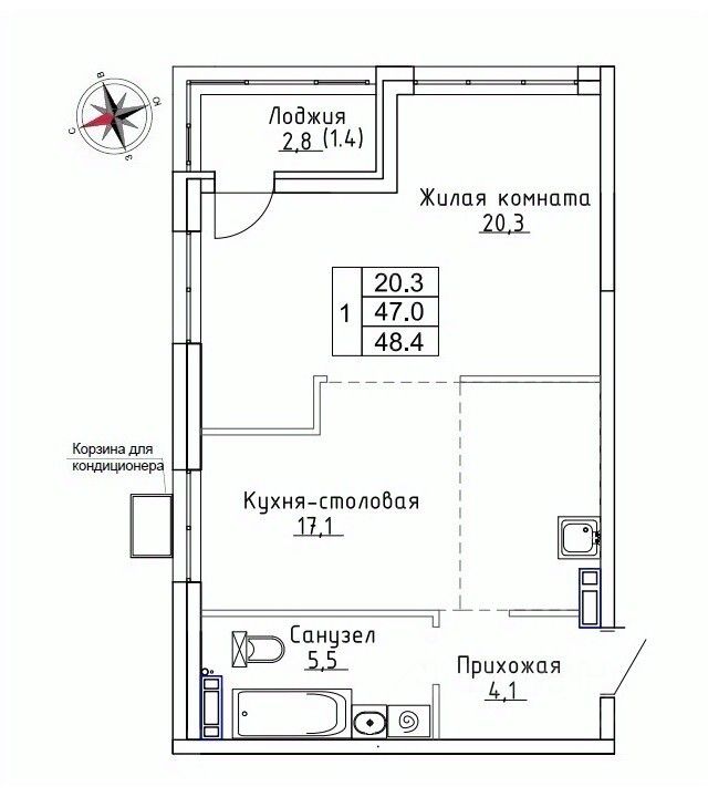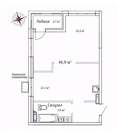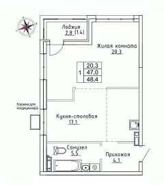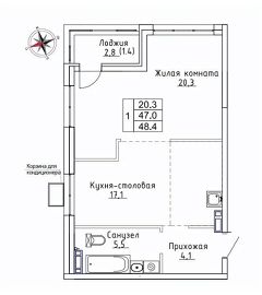 Продаётся 1-комнатная квартира в строящемся доме (Дом 1), срок сдачи: III-кв. 2026, общей площадью 48.4 кв.м., на 12 этаже. ЖК "Новый" - это: