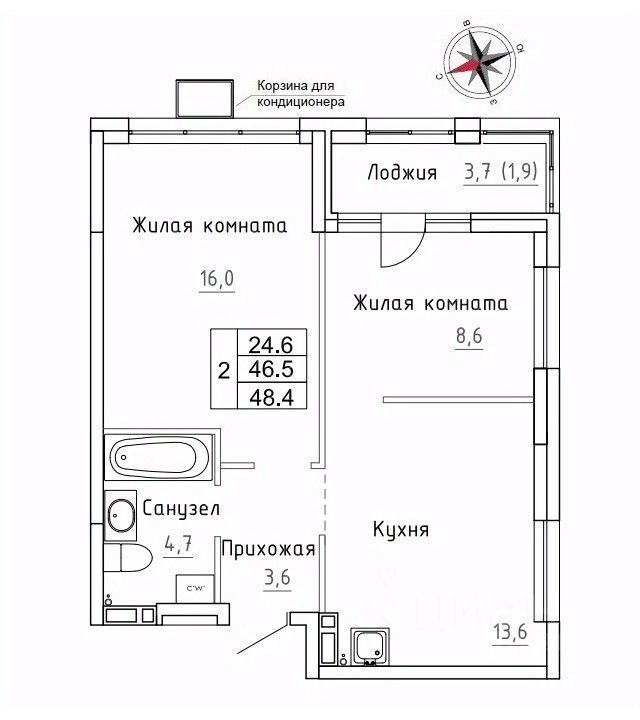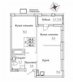 Продаётся 2-комнатная квартира в строящемся доме (Дом 1), срок сдачи: III-кв. 2026, общей площадью 48.4 кв.м., на 12 этаже. ЖК "Новый" - это:
