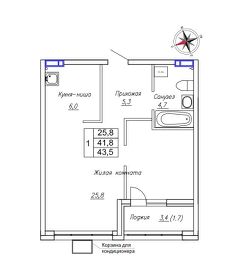Продаётся 1-комнатная квартира в строящемся доме (Дом 2), срок сдачи: III-кв. 2026, общей площадью 43.5 кв.м., на 6 этаже. ЖК "Новый" - это: