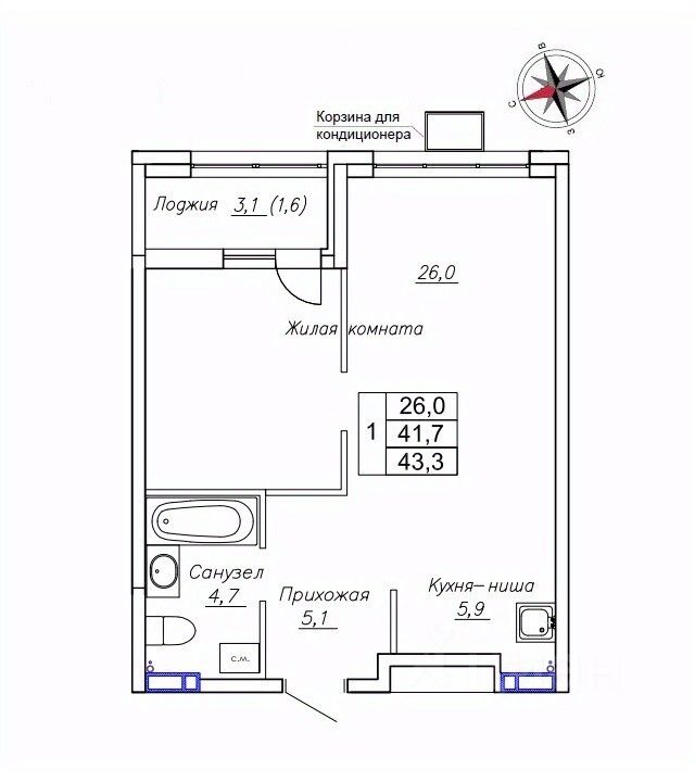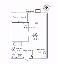 Продаётся 1-комнатная квартира в строящемся доме (Дом 2), срок сдачи: III-кв. 2026, общей площадью 43.3 кв.м., на 7 этаже. ЖК "Новый" - это: