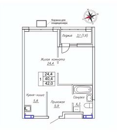 Продаётся 1-комнатная квартира в строящемся доме (Дом 2), срок сдачи: III-кв. 2026, общей площадью 42 кв.м., на 8 этаже. ЖК "Новый" - это: