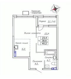 Продаётся 1-комнатная квартира в строящемся доме (Дом 2), срок сдачи: III-кв. 2026, общей площадью 40.2 кв.м., на 8 этаже. ЖК "Новый" - это: