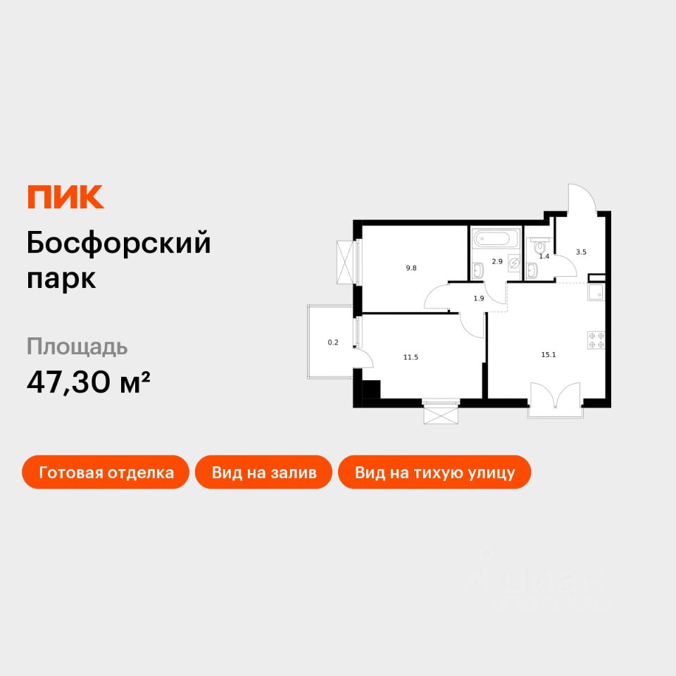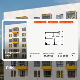 Продаётся 2-комн. квартира площадью 47,3 кв.м на 7 этаже 9 этажного дома (Корпус 4, Секция 1) проекта ПИК Босфорский парк. Светлый просторный подъезд на уровне земли, функциональная планировка, большие окна, c отделкой.