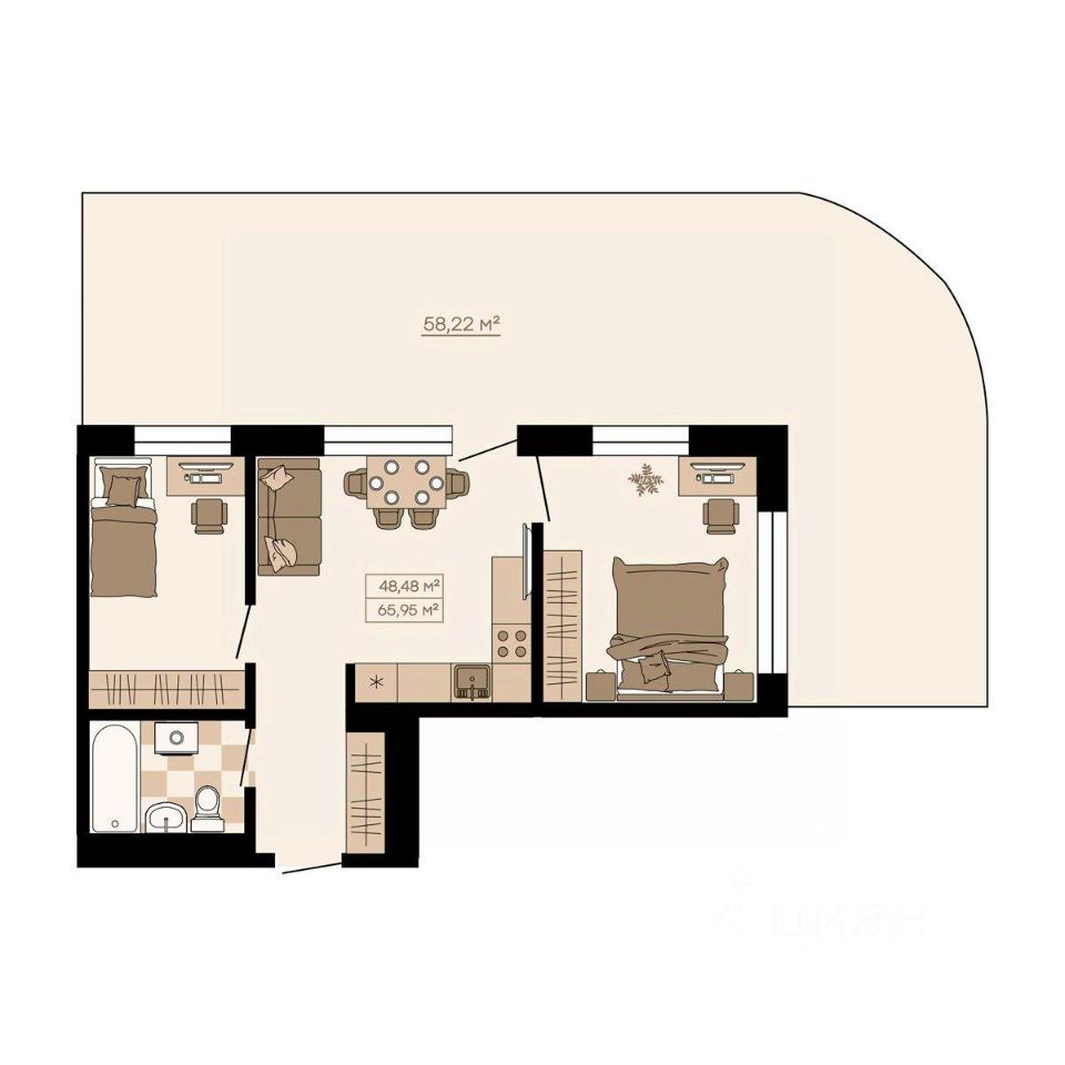 Квартиры формата Smart Comfort + (смарт комфорт +) площадью от 32 кв. м до 136 кв. м предоставляют свободу в реализации планировочных решений, а высота потолков 2,7 м с увеличенными панорамными окнами 2,45 м обеспечивают высокий уровень естественного освещения и открывают завораживающий обзор на лесной массив загородной местности.