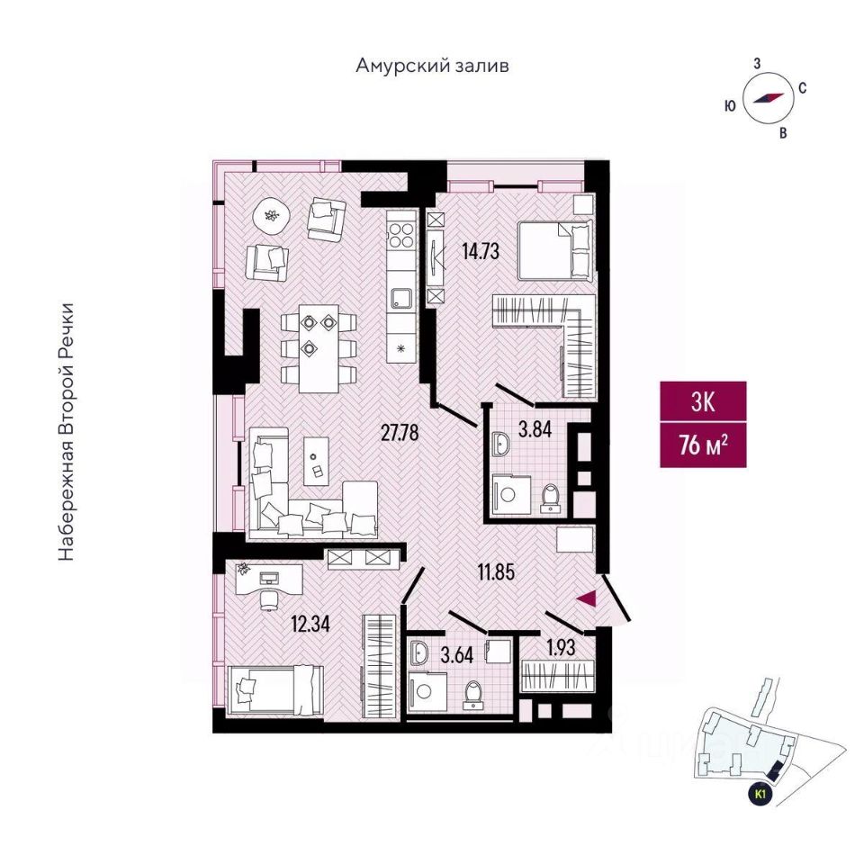 STARK навсегда изменит карту Владивостока, как и ваши представления о недвижимости бизнес-класса. 7 башен переменной этажности возвысятся над городом в исторически значимом районе Второй речки. Вас ждёт бескомпромиссный комфорт с индивидуально подобранными застройщиком резидентами коммерческих пространств, первая в городе 2-уровневая набережная вдоль русла Второй речки и 58 200 квадратных метров паркового благоустройства в рамках глобального редевелопмента территории. А ещё: внушительный выбор функциональных и просторных планировочных решений, предусматривающих возможность самостоятельного зонирования площади и реализации любых дизайнерских решений в соответствии с индивидуальными потребностями семьи, доступны варианты недвижимости с 2 санузлами; высокие 3-метровые потолки и витражное остекление, обеспечивающие высокий уровень естественного освещения пространства квартиры; умопомрачительные панорамные виды на город с сопками на горизонте, благоустроенную прогулочную набережную вдоль русла Второй речки, водную акваторию Амурского залива; высокая транспортная доступность, расположение в непосредственной близости от главной дорожной развязки Второй речки "Автовокзал Кольцо Багратиона, Проспект 100-летия Владивостока Фабрика Заря" (350 м); индивидуально подобранные застройщиком резиденты коммерческой недвижимости, с целью достижения оптимального баланса между общественными пространствами, заведениями и сервисами, на территории квартала: детский сад, медицинский центр, аптека, SPA-комплекс, салон красоты, гипермаркет, магазины, рестораны, кафе, булочная-кондитерская; развитая социальная инфраструктура микрорайона, в пешей доступности: частные детские сады и школы, входящие в городские рейтинги, медицинские центры, стоматологические клиники, фитнес-клубы, торговый центр, гипермаркеты, рестораны, аптеки, зоомагазины, химчистка и заведения сферы услуг, обслуживающие все потребности горожан; приватное благоустроенное пространство без машин для отдыха на внутренней стилобатной части комплекса с прогулочными зонами, детскими и спортивными площадками, куда могут попасть только жители квартала и их гости; закрытая охраняемая территория, контроль доступа по биометрии, видеонаблюдение по всему периметру с системой распознавания лиц, консьерж-сервис в лобби, лапомойка и колясочная; 2-уровневый крытый паркинг в стилобате здания с машино-местами увеличенной площади до 27,56 кв. м и прямым доступом к лифтовой зоне; индивидуальные келлеры на -1 и 1 уровнях комплекса для хранения сезонных вещей и спортивного инвентаря площадью до 49,77 кв. м; 5 грузопассажирских лифтов в каждой башне с возможностью дистанционного вызова и грузоподъемностью 630 кг, 1000 кг, 1350 кг; отдельные шахты для монтажа и обслуживания кондиционеров, скрытые за фасадом, чтобы с эстетической точки зрения не портить облик башен. Открыты продажи в башнях 1, 2 и 3.