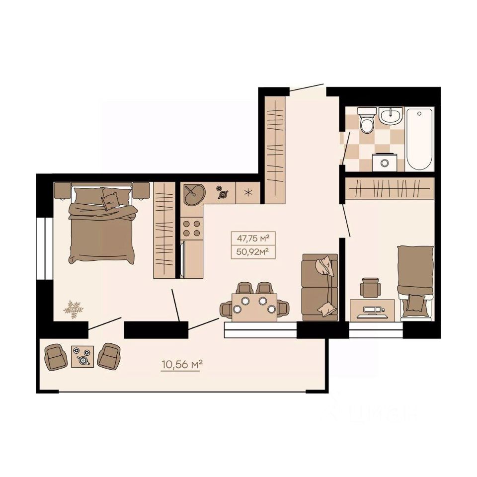 Квартиры формата Smart Comfort + (смарт комфорт +) площадью от 32 кв. м до 136 кв. м предоставляют свободу в реализации планировочных решений, а высота потолков 2,7 м с увеличенными панорамными окнами 2,45 м обеспечивают высокий уровень естественного освещения и открывают завораживающий обзор на лесной массив загородной местности.