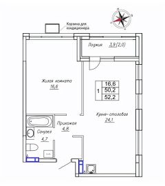 Продаётся 1-комнатная квартира в строящемся доме (Дом 2), срок сдачи: III-кв. 2026, общей площадью 52.2 кв.м., на 2 этаже. ЖК "Новый" - это: