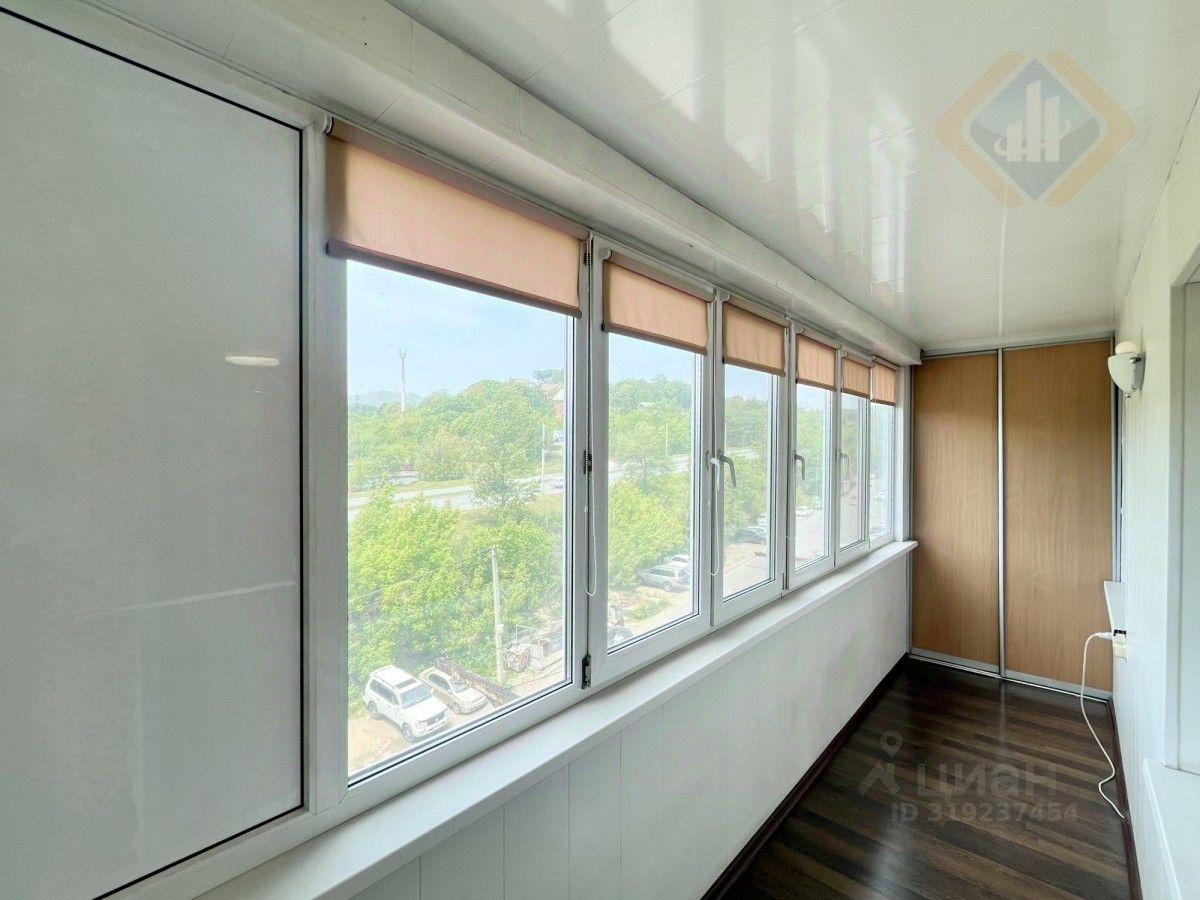 Застеклённая лоджия с удобным встроенным шкафом — дополнительное место для хранения.