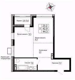Продаётся 2-комнатная квартира в строящемся доме (Дом 2), срок сдачи: III-кв. 2026, общей площадью 44.3 кв.м., на 4 этаже. ЖК "Новый" - это: