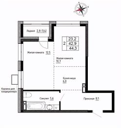 Продаётся 2-комнатная квартира в строящемся доме (Дом 2), срок сдачи: III-кв. 2026, общей площадью 44.3 кв.м., на 5 этаже. ЖК "Новый" - это: