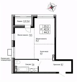 Продаётся 2-комнатная квартира в строящемся доме (Дом 2), срок сдачи: III-кв. 2026, общей площадью 44.3 кв.м., на 12 этаже. ЖК "Новый" - это: