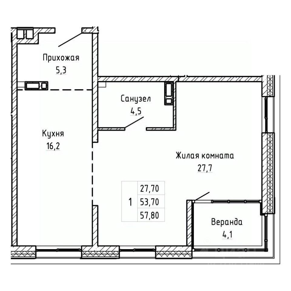 Общая площадь57,8 м²