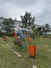 Придомовая территория ухоженная, уютный зеленый двор с детской площадкой, возле подъездов в тени деревьев стоят удобные скамейки, разбиты клумбы, много цветов и деревьев.
