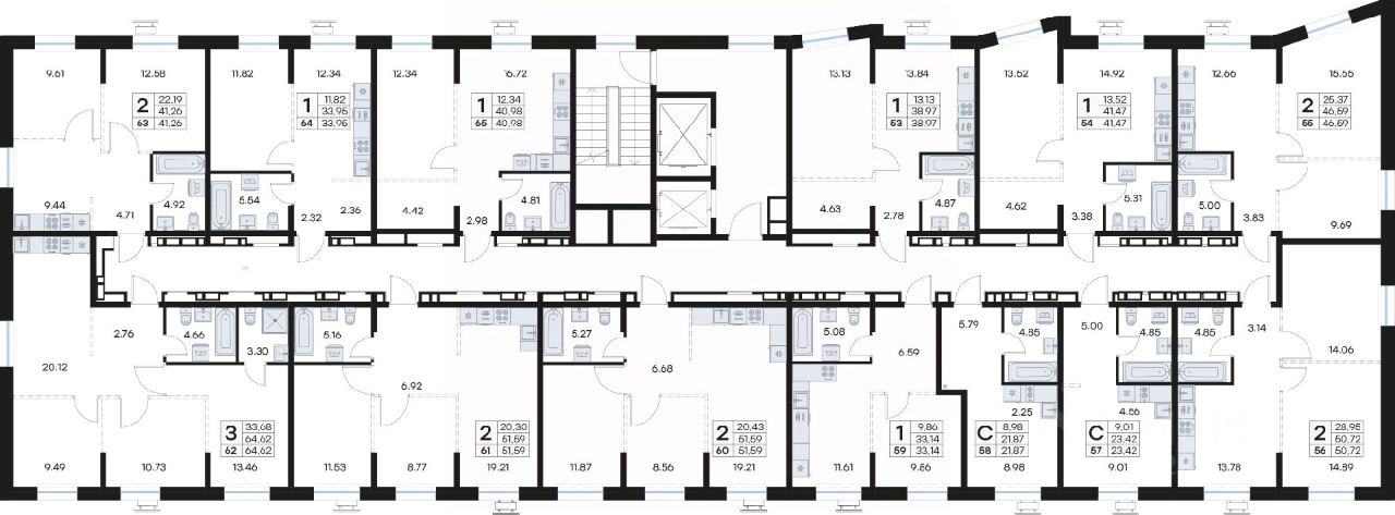 • Планировочные решения под любой жизненный сценарий от 23 до 67 м²