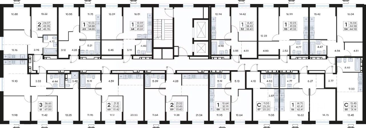 • Планировочные решения под любой жизненный сценарий от 23 до 67 м²