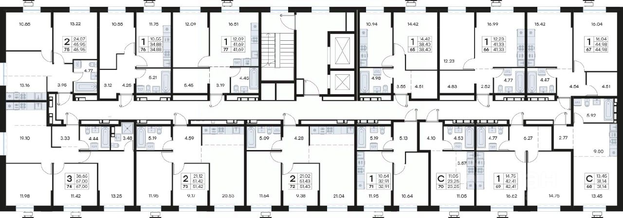 • Планировочные решения под любой жизненный сценарий от 23 до 67 м²