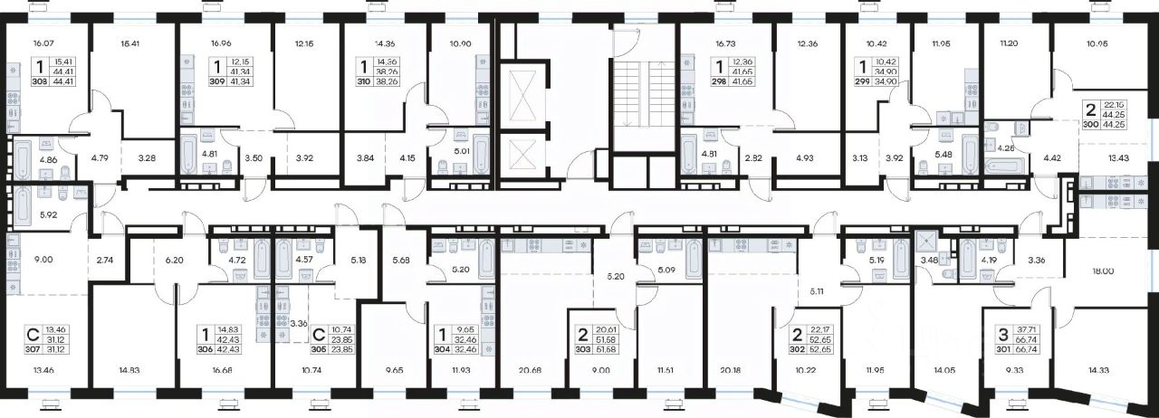 • Планировочные решения под любой жизненный сценарий от 23 до 67 м²