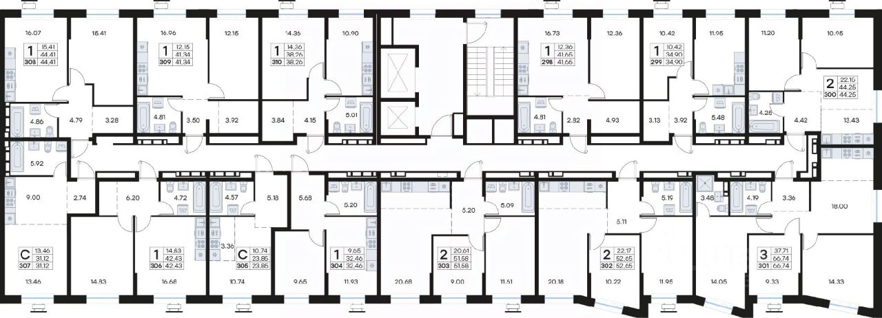 • Планировочные решения под любой жизненный сценарий от 23 до 67 м²