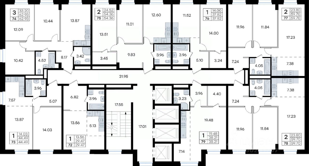 Продается 3-комн. квартира на 10-м этаже в жилом комплексе GloraX Тухачевского — современном проекте нового формата в престижном районе Владивостока. Общая площадь лота составляет 62,93 кв. м, из которых 33,20 кв. м отведено под жилую и 13,87 кв. м под кухонную зону. Номер квартиры - 74.
