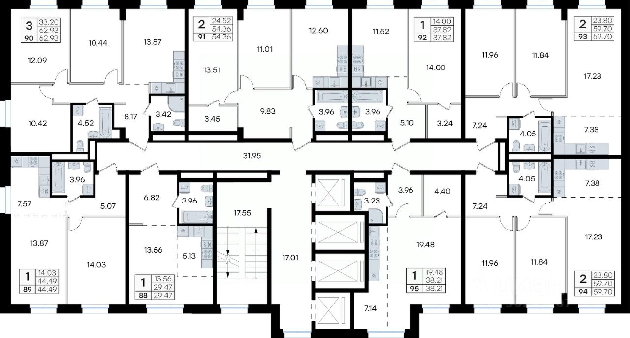 Продается 3-комн. квартира на 12-м этаже в жилом комплексе GloraX Тухачевского — современном проекте нового формата в престижном районе Владивостока. Общая площадь лота составляет 62,93 кв. м, из которых 33,20 кв. м отведено под жилую и 13,87 кв. м под кухонную зону. Номер квартиры - 90.