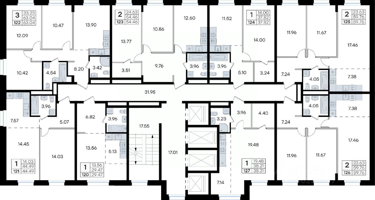 Продается 2-комн. квартира  на 16-м этаже в жилом комплексе GloraX Тухачевского — современном проекте нового формата в престижном районе Владивостока. Общая площадь лота составляет 59,76 кв. м, из которых 23,63 кв. м отведено под жилую и 7,38 кв. м под кухонную зону. Номер квартиры - 125.