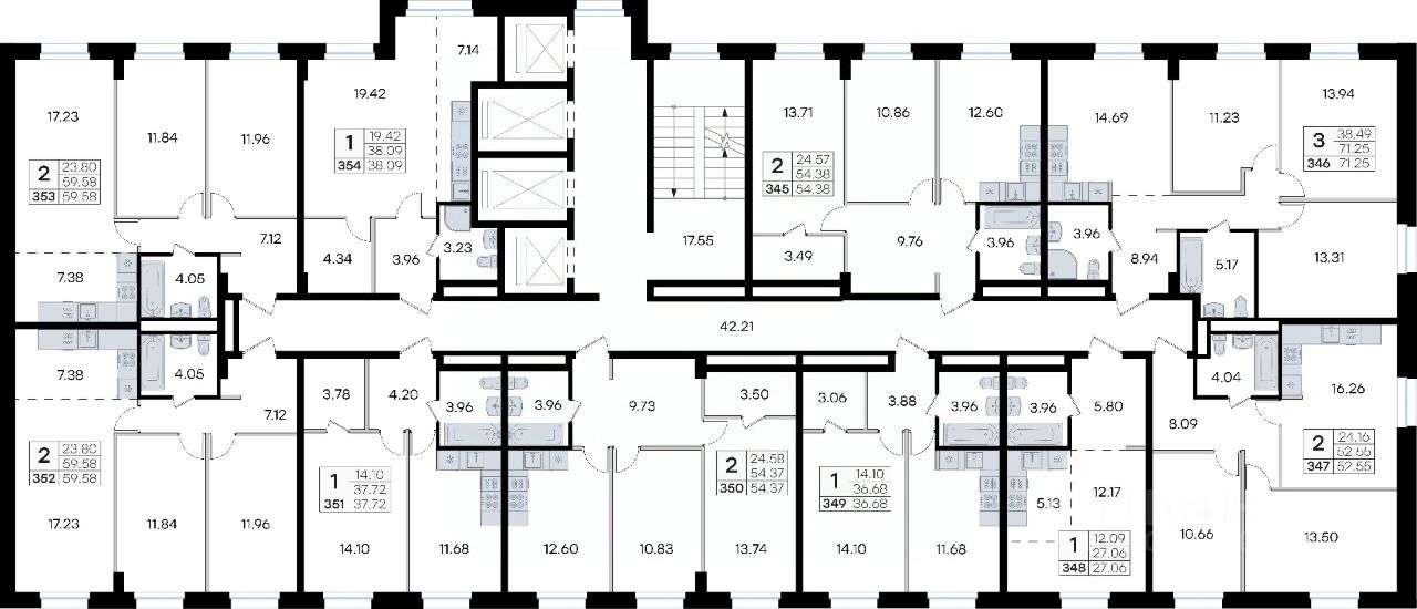 Продается квартира-студия на 14-м этаже в жилом комплексе GloraX Тухачевского — современном проекте нового формата в престижном районе Владивостока. Общая площадь лота составляет 38,09 кв. м, из которых 19,42 кв. м отведено под жилую и 7,14 кв. м под кухонную зону. Номер квартиры - 354.
