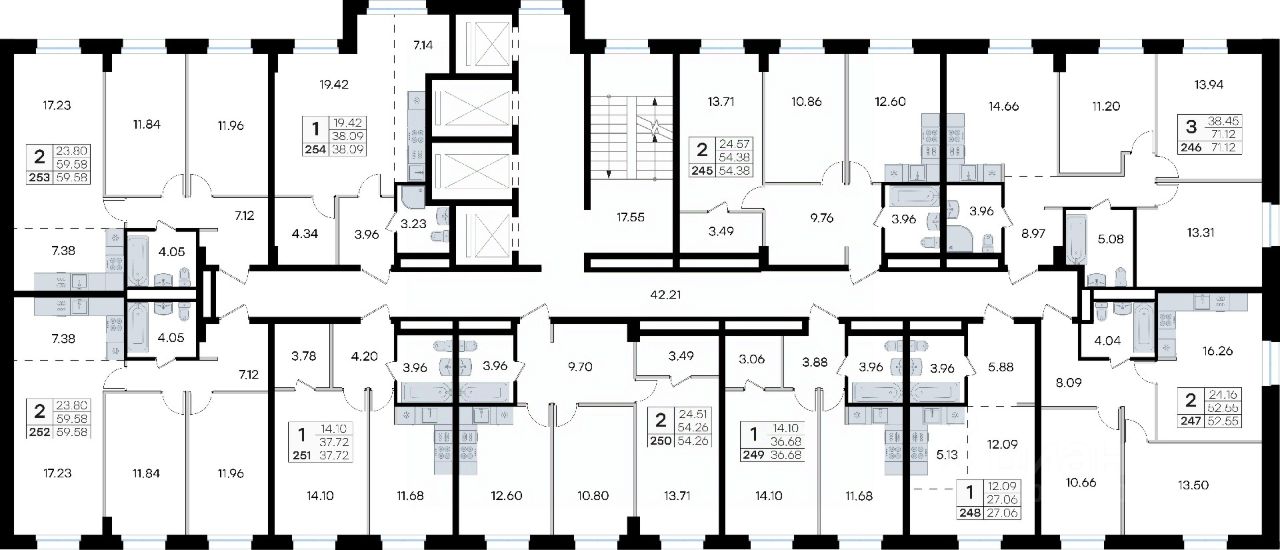 Продается квартира-студия на 4-м этаже в жилом комплексе GloraX Тухачевского — современном проекте нового формата в престижном районе Владивостока. Общая площадь лота составляет 38,09 кв. м, из которых 19,42 кв. м отведено под жилую и 7,14 кв. м под кухонную зону. Номер квартиры - 254.