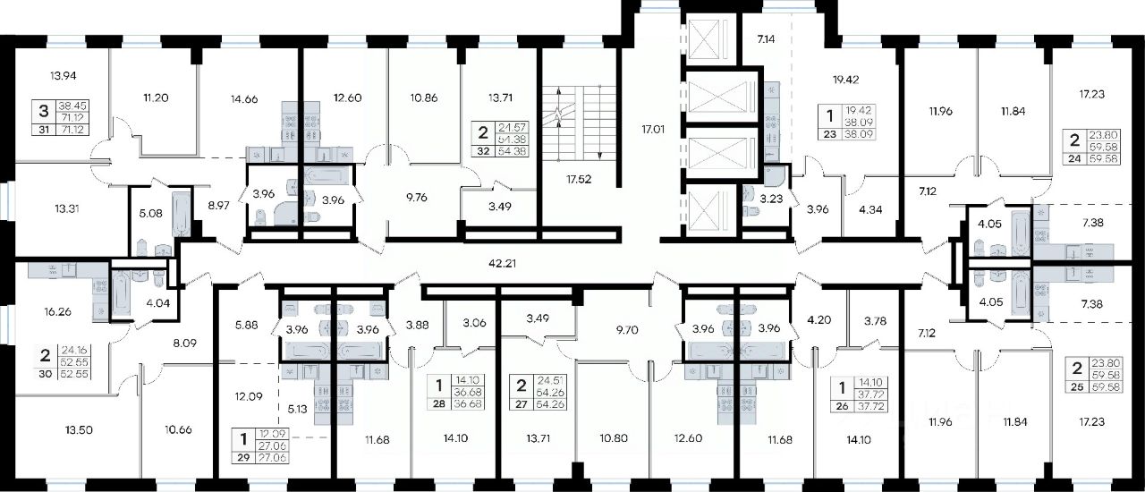Продается 2-комн. квартира на 4-м этаже в жилом комплексе GloraX Тухачевского — современном проекте нового формата в престижном районе Владивостока. Общая площадь лота составляет 54,38 кв. м, из которых 24,57 кв. м отведено под жилую и 12,60 кв. м под кухонную зону. Номер квартиры - 32.