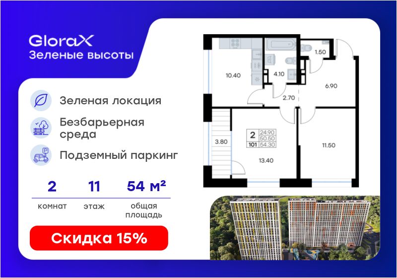 Узнайте больше в отделе продаж — выберите свою квартиру в GloraX Зелёные высоты уже сегодня!