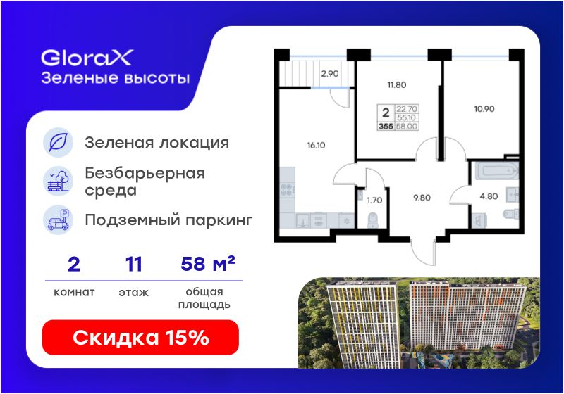 Узнайте больше в отделе продаж — выберите свою квартиру в GloraX Зелёные высоты уже сегодня!