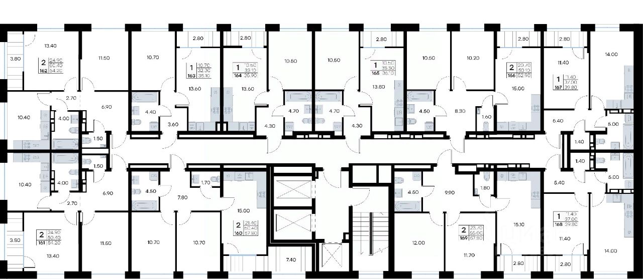 Цокольный этаж здания отведен под индивидуальные кладовые площадью от 3 до 7 квадратных метров, которые можно использовать для хранения сезонных вещей. Доступ к кладовым - на лифте с жилых этажей.
