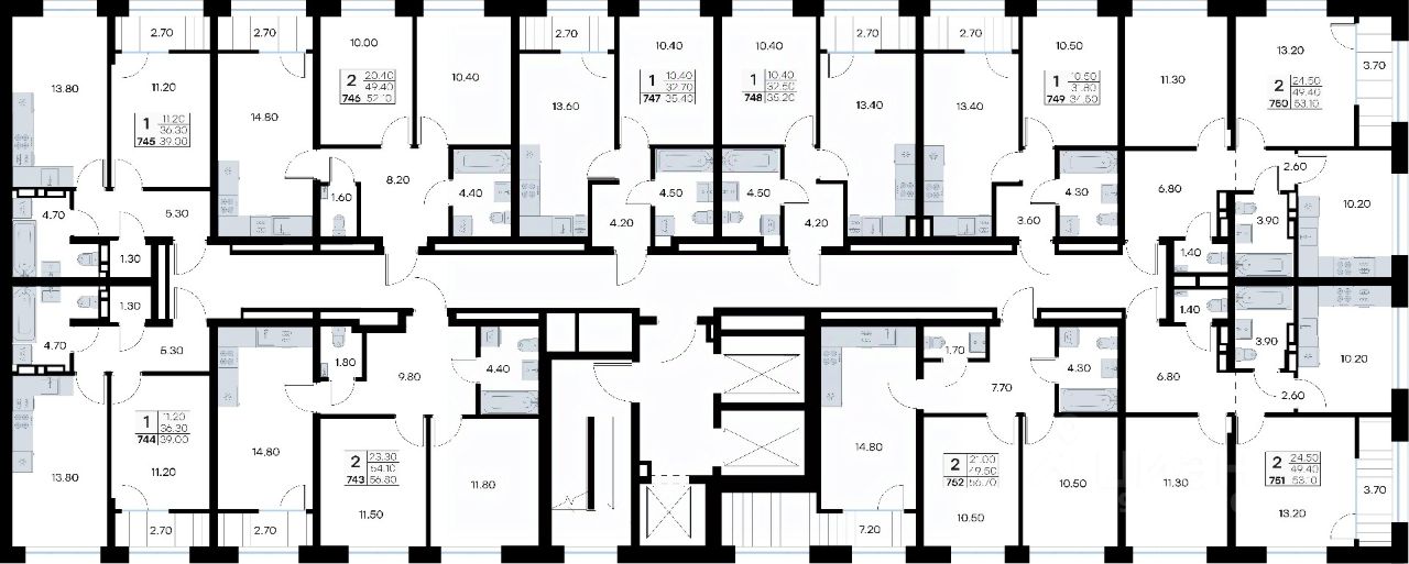 Цокольный этаж здания отведен под индивидуальные кладовые площадью от 3 до 7 квадратных метров, которые можно использовать для хранения сезонных вещей. Доступ к кладовым - на лифте с жилых этажей.