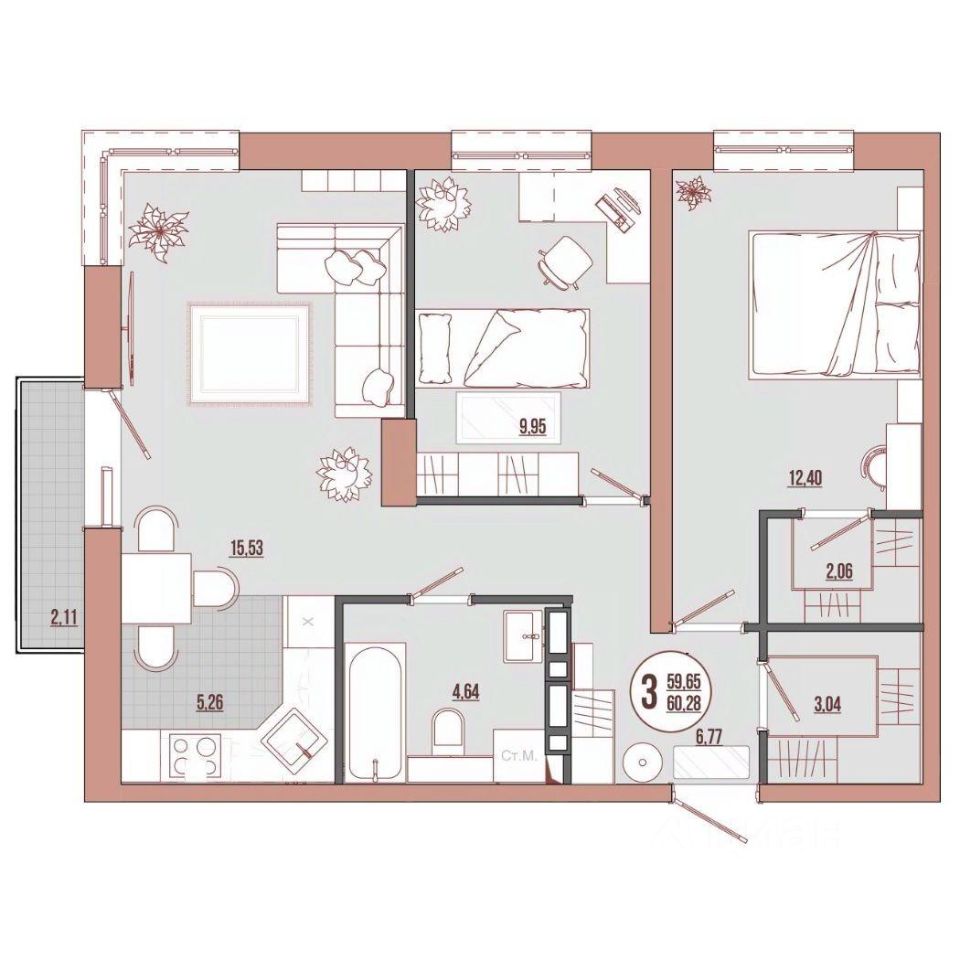 Продаётся 3-комнатная квартира в строящемся доме (Корпус 1), срок сдачи: III-кв. 2026, общей площадью 60.28 кв.м., на 8 этаже. Новый жилой дом от застройщика "СЗ Стоунлэнд" расположен по адресу: Россия, Приморский край, Владивосток, улица Адмирала Юмашева
