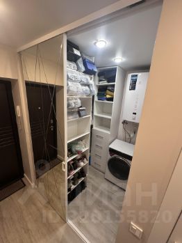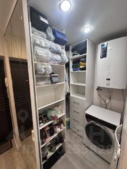 - В коридоре встроена гардеробная aristo, в которой установлена стиральная машинка и бойлер