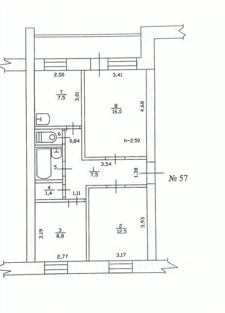 Удобная планировка: просторная гостиная 16 кв.м, две изолированные спальни 12,5 и 8,8 кв.м