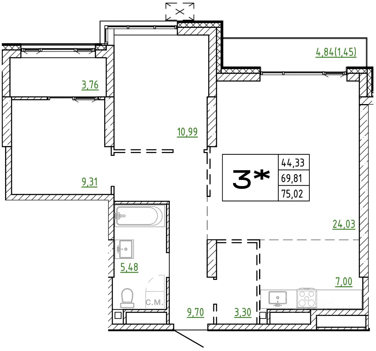 75,02 м²