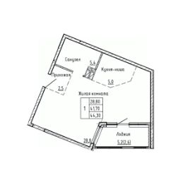 Продаётся 1-комнатная квартира в строящемся доме (Корпус 1), срок сдачи: II-кв. 2026, общей площадью 44.3 кв.м., на 8 этаже.